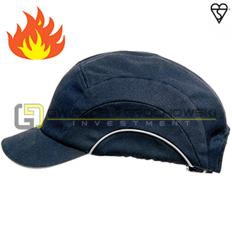 • Czapka trudnopalna, testowana w 180°C, wystawiona na działanie ognia, zgodnie z normami EN11612 i EN14116