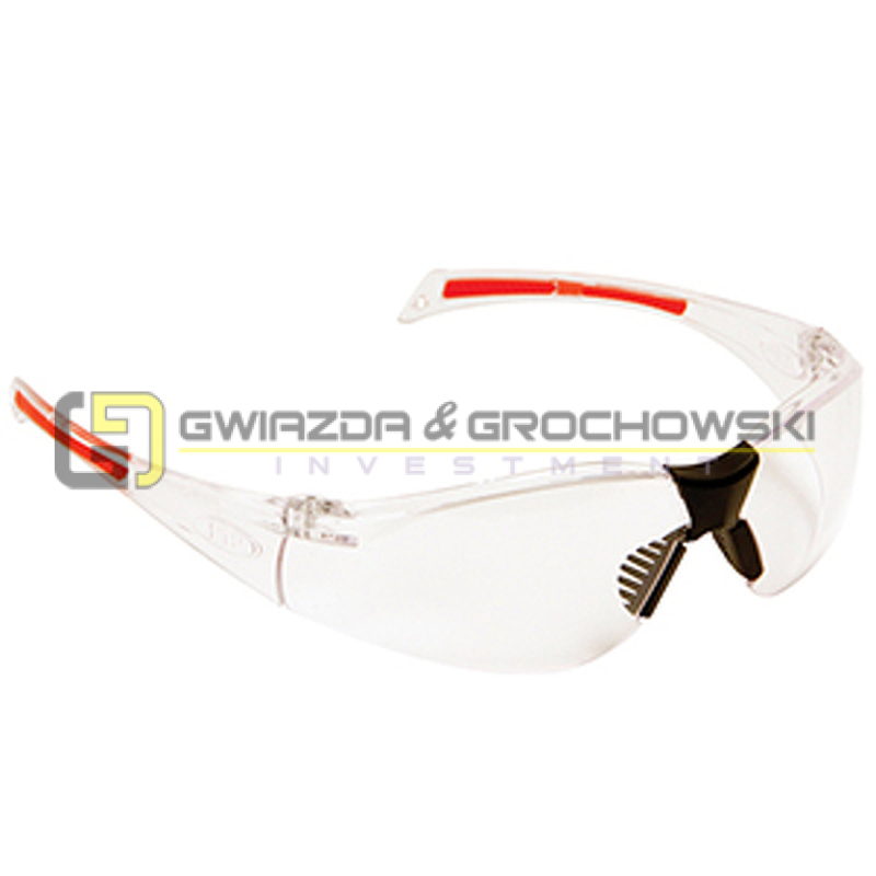 - Okulary ochronne wykonane z bezbarwnego lub przyciemnianego poliwęglanu przeznaczone są do ochrony oczu przed odpryskami cieczy i ciał stałych.