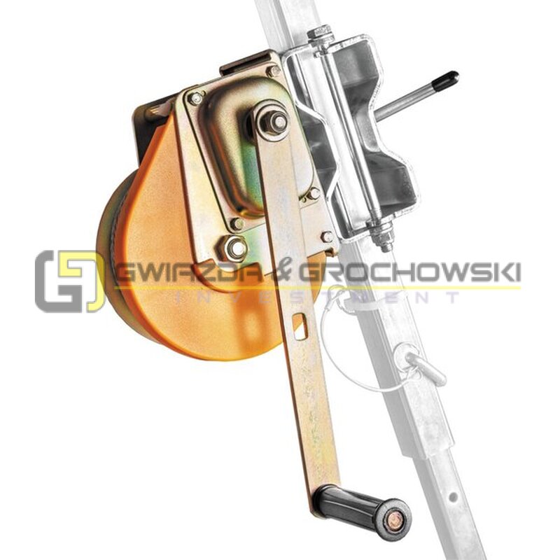 - Przełożenie zastosowane w mechanizmie pozwala wykonać jeden obrót bębna na 5 obrotów korby wyciągarki.