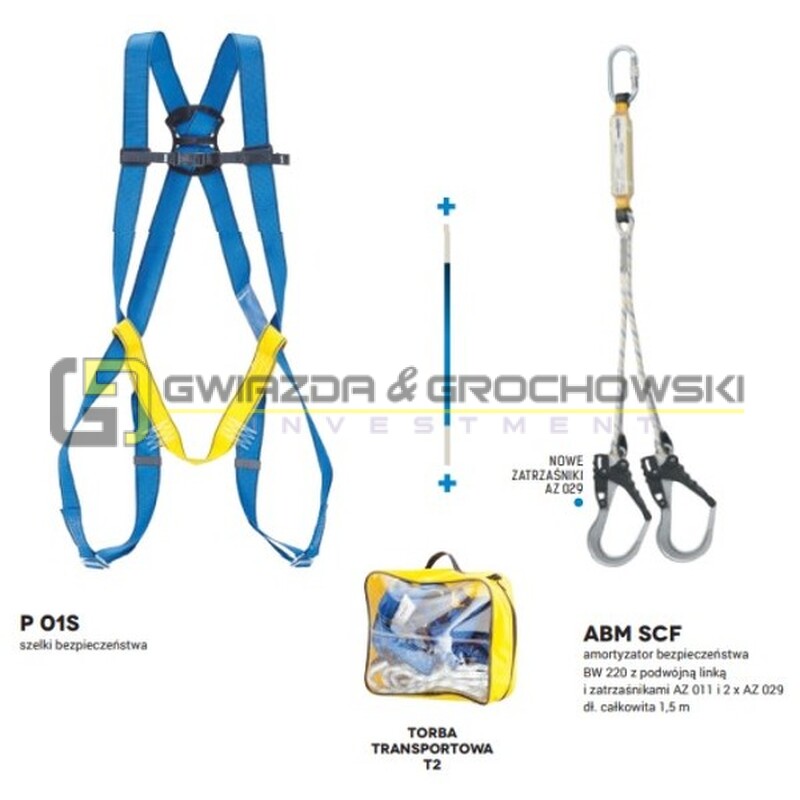 - amortyzator bezpieczeństwa BW 220 z podwójną linką i zatrzaśnikami stalowymi AZ 011 i 2 x AZ 029, dł. całkowita 1,5 m