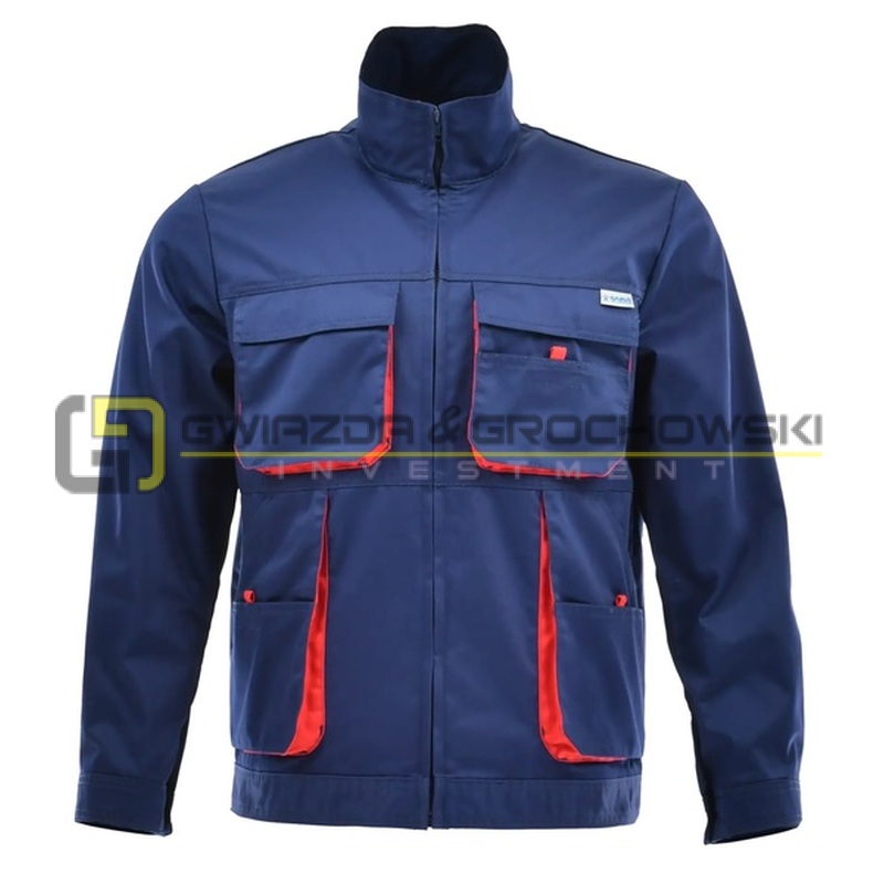 - dwie kieszenie piersiowe z kontrastowymi mieszkami, kryte patkami