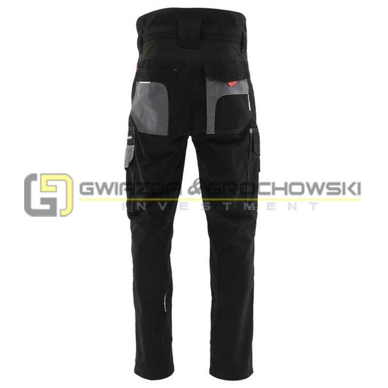 Spodnie wykonane z mocnej i trwałej tkaniny o gramaturze 300 ± 5 g/m² i składzie 60% bawełna / 40% poliester zapewniają wytrzymałość oraz komfort nawet podczas intensywnej pracy. Zastosowanie elastycznych wstawek ze stretchu gwarantuje pełną swobodę ruchu.