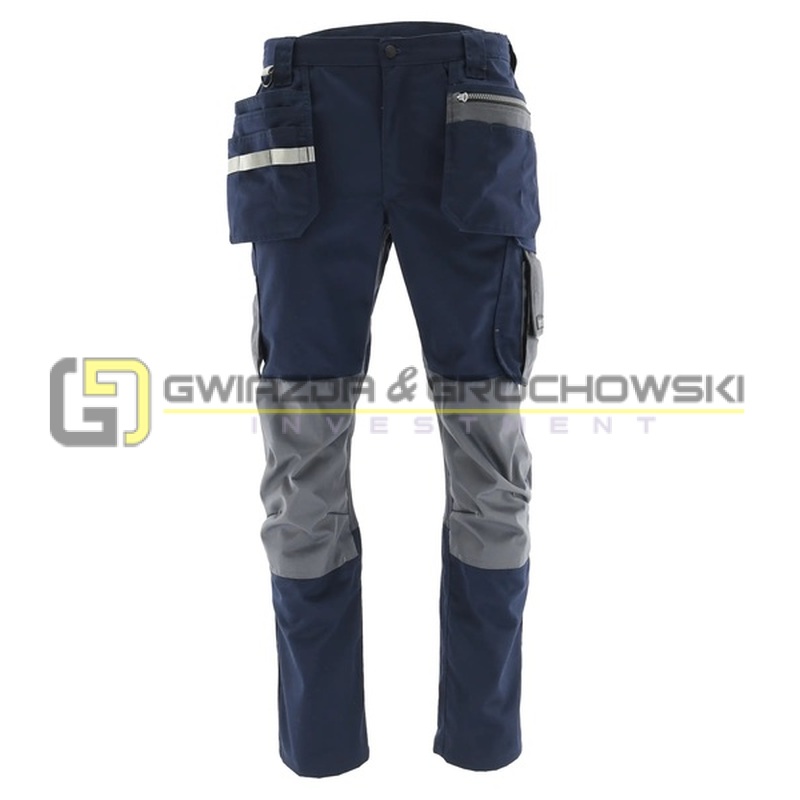 Spodnie robocze Monter łączą funkcjonalność z komfortem użytkowania, zapewniając dużą swobodę ruchu podczas intensywnej pracy. Dzięki zastosowaniu elastycznych wstawek oraz praktycznemu układowi kieszeni, idealnie sprawdzą się w wymagających warunkach. Elementy odblaskowe zwiększają bezpieczeństwo użytkownika w słabym oświetleniu.