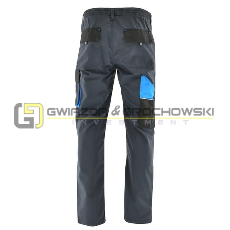 Uszyte z trwałej tkaniny typu rip-stop, która dzięki swojej strukturze minimalizuje ryzyko dalszego rozdarcia po uszkodzeniu. Kontrastowe detale w kolorze czerwonym lub niebieskim nadają spodniom charakteru i pozwalają dopasować odzież roboczą do własnych preferencji.