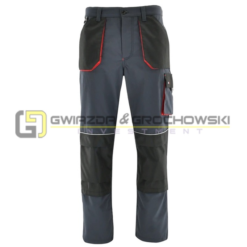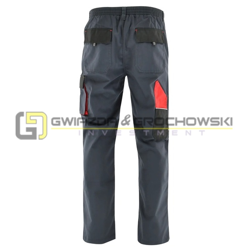 Uszyte z trwałej tkaniny typu rip-stop, która dzięki swojej strukturze minimalizuje ryzyko dalszego rozdarcia po uszkodzeniu. Kontrastowe detale w kolorze czerwonym lub niebieskim nadają spodniom charakteru i pozwalają dopasować odzież roboczą do własnych preferencji.