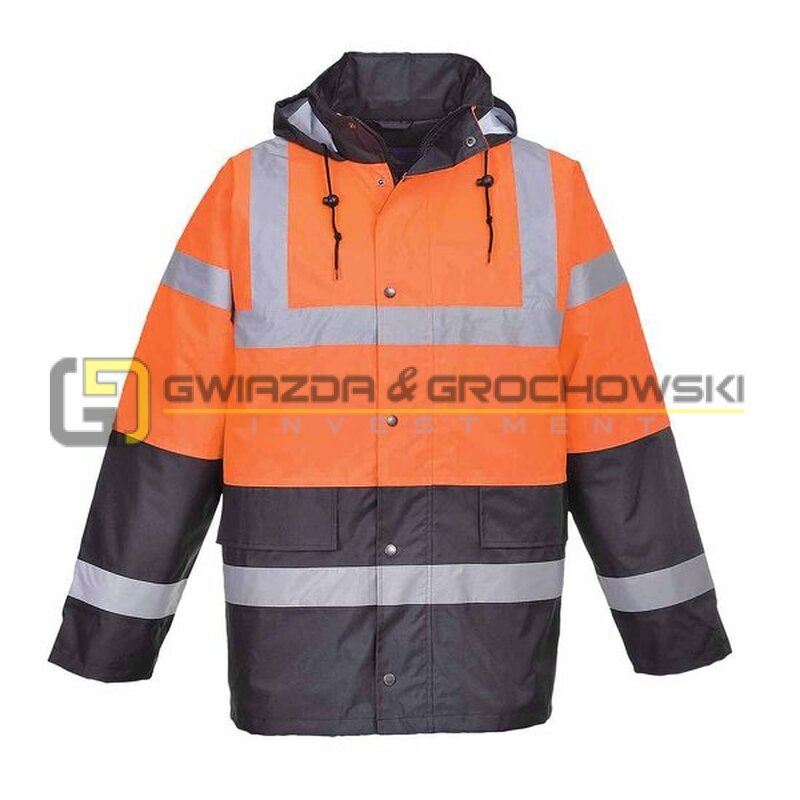 - Kurtka ostrzegawcza dwukolorowa .Można ją nosić we wszelkich warunkach atmosferycznych.