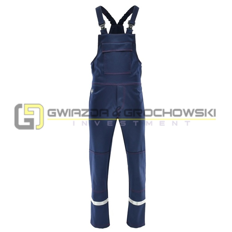 - taśma odblaskowa trudnopalna na nogawkach o szerokości 2,5 cm
