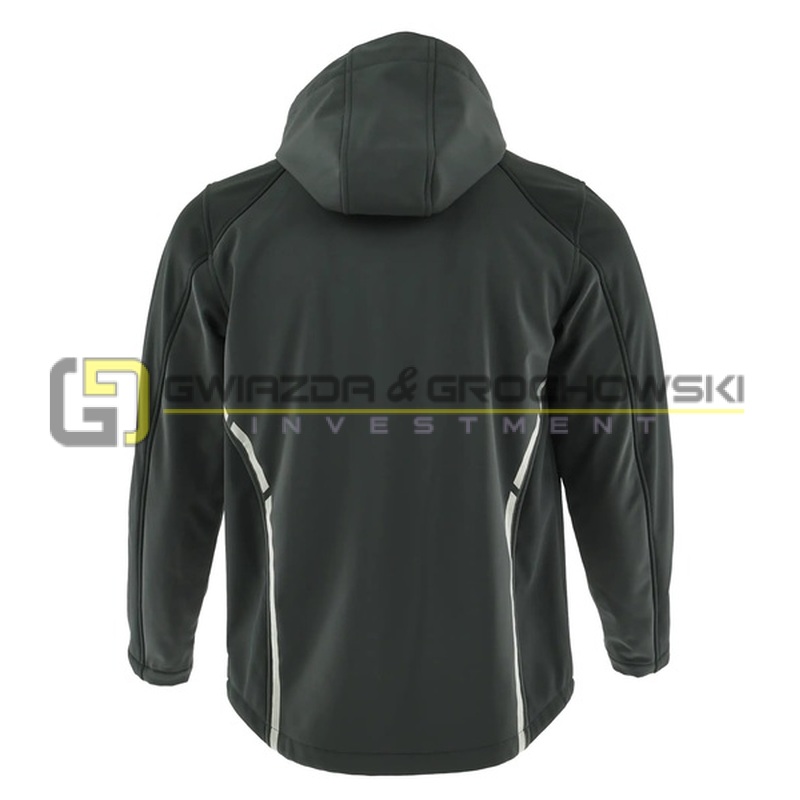 - tkanina softshell: wiatroodporna, oddychająca, zapewniająca komfort termiczny