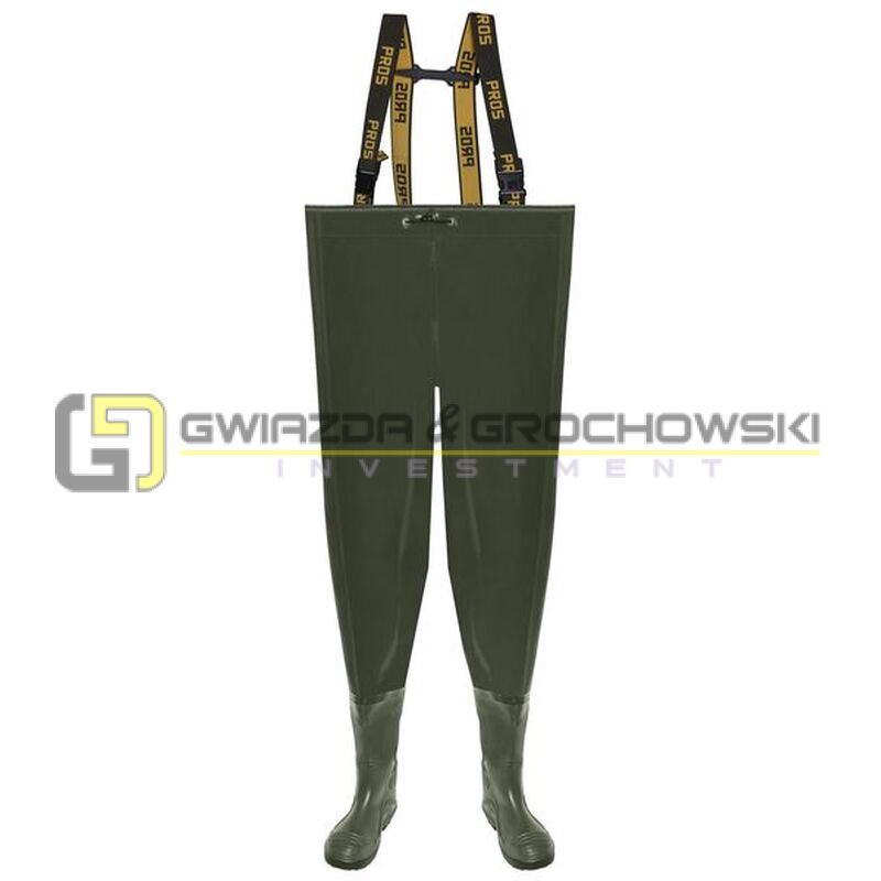 - Spodniobuty wodoochronne o wysokiej odporności na uszkodzenia mechaniczne, z wgrzanymi na stałe kaloszami zabezpieczającymi przed poślizgnięciem na podłożu stalowym pokrytym glicerolem i podłożu ceramicznym pokrytym roztworem laurylosiarczanu sodu (typ ochrony OB E SRA).