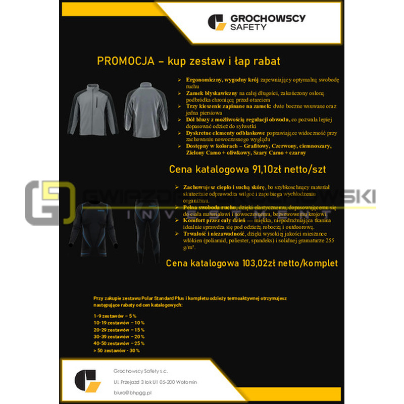 Przy zakupie zestawu Polar Standard Plus i kompletu odzieży termoaktywnej otrzymujesz następujące rabaty od cen katalogowych: