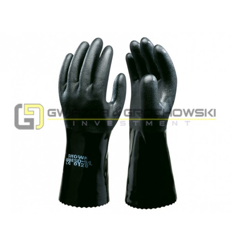 - • Wykonana z PCV, uszczelnia i chroni dłonie przed chemikaliami, zachowując elastyczność