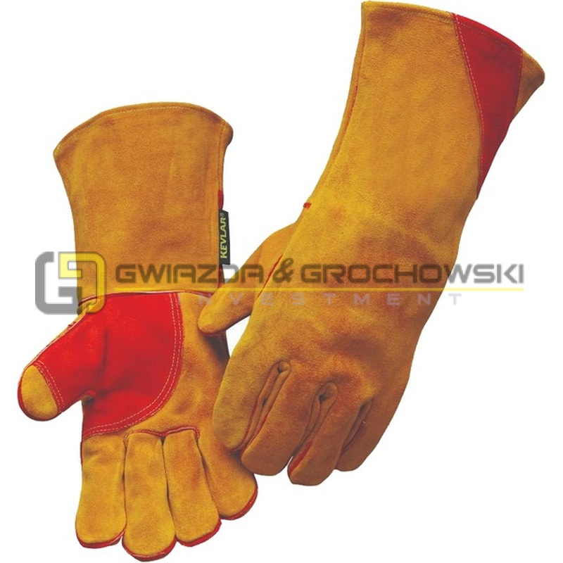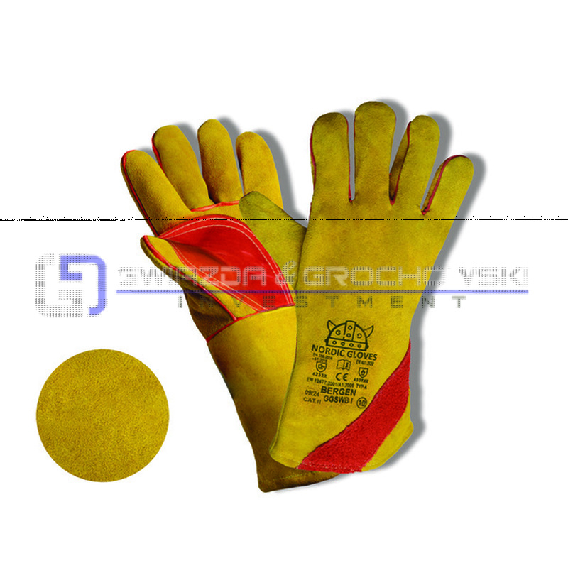 - Rękawice wykonane z najwyższej jakości dwoiny bydlęcej w kolorze żółtym.